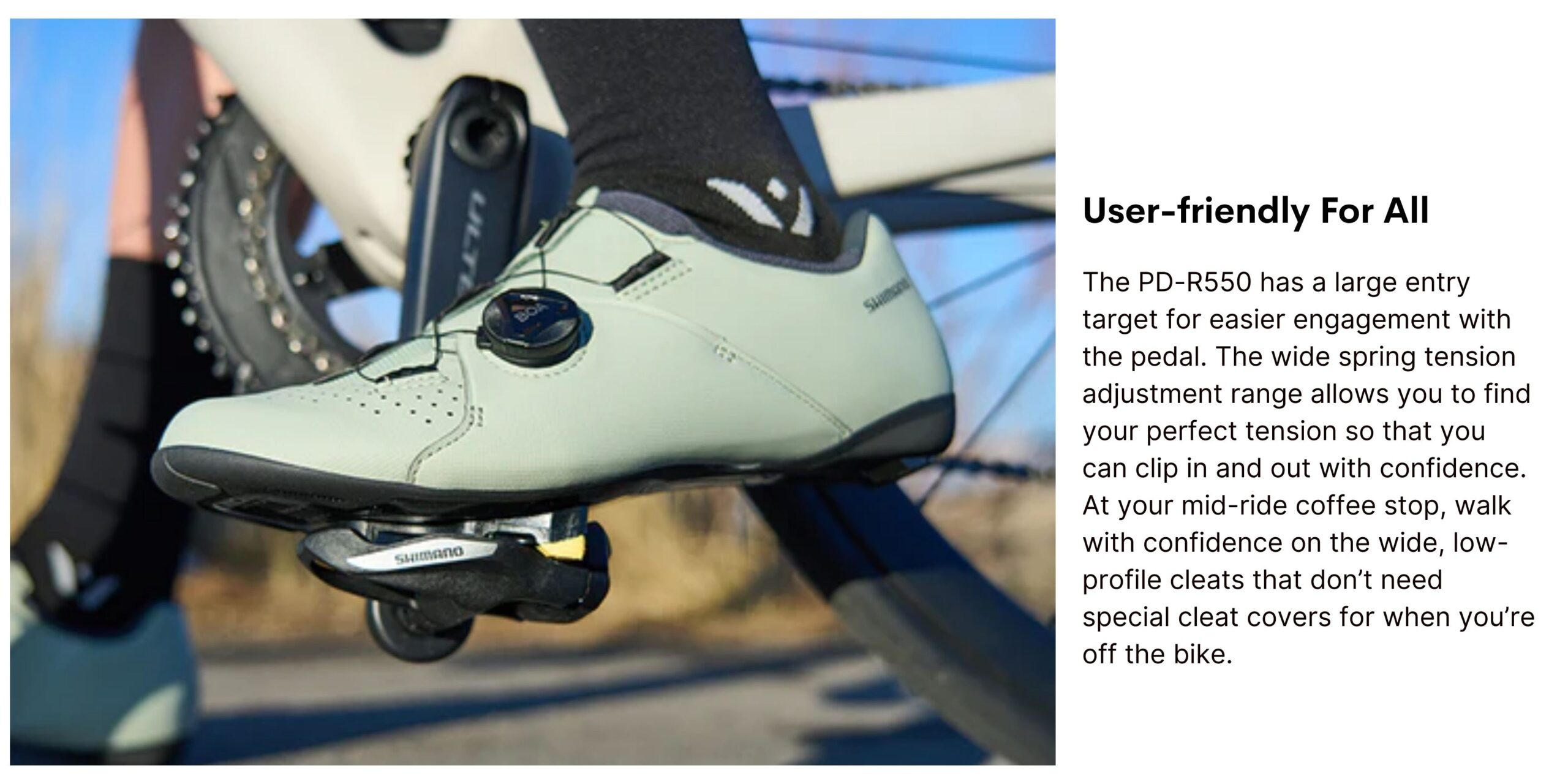 - The PD-R550 is a User-Friendly Road Bike Pedal: Durable and lightweight SPD-SL pedal for all types of riders.