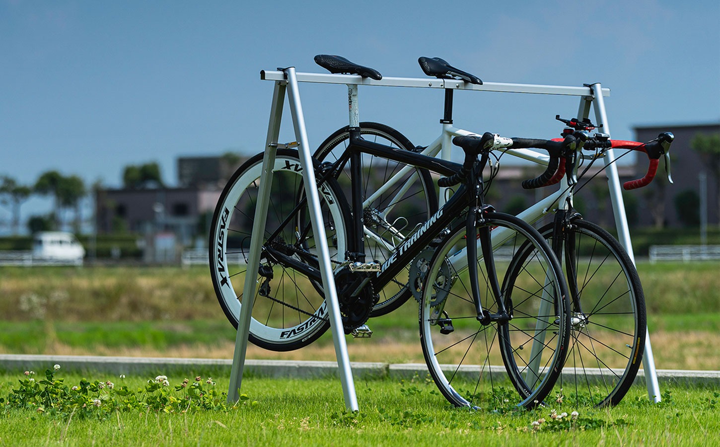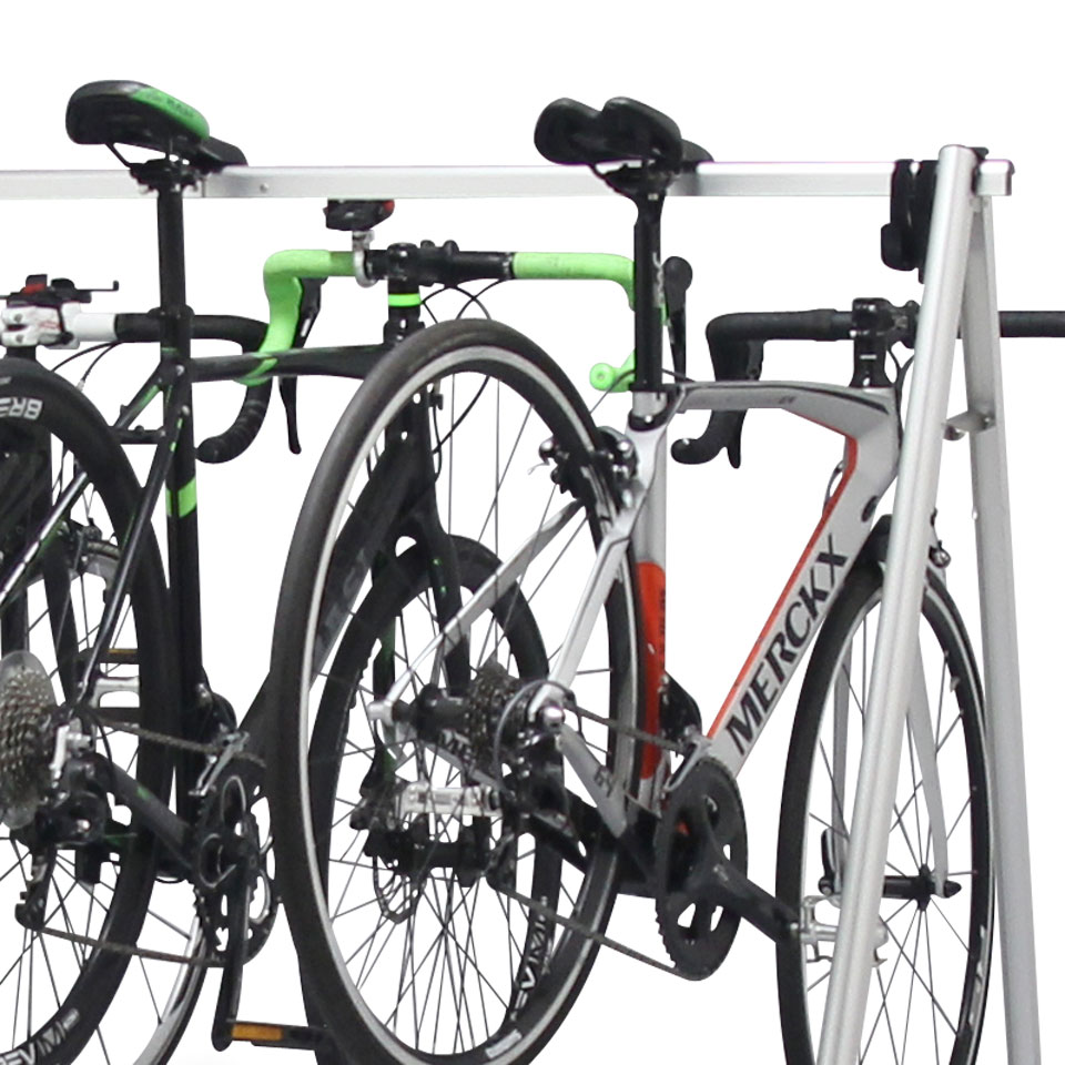 The Level 140H bike stand is a lightweight, foldable stand for temporary holding of up to 3 bikes.