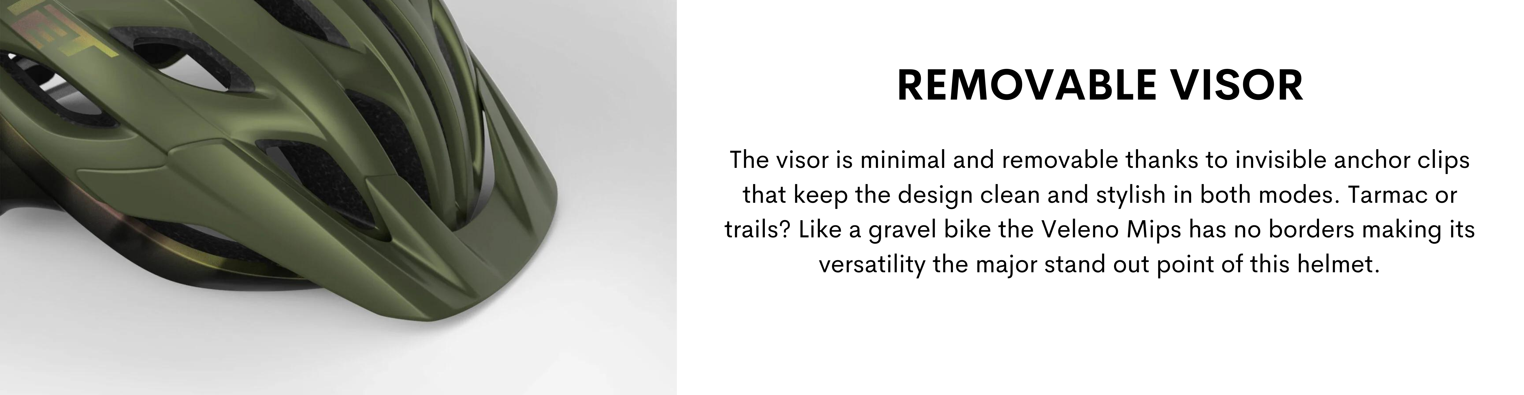 The all new Veleno Mips is made for any bike and none in particular. The most versatile helmet of the MET range, it gives you access to the entire world of cycling in one go thanks to its variety of features. Naturally born for MTB with a sporty design, it also adapts to tarmac and gravel roads. Secure and protective on the trail but light and ventilated for long bike packing rides on or off-road.